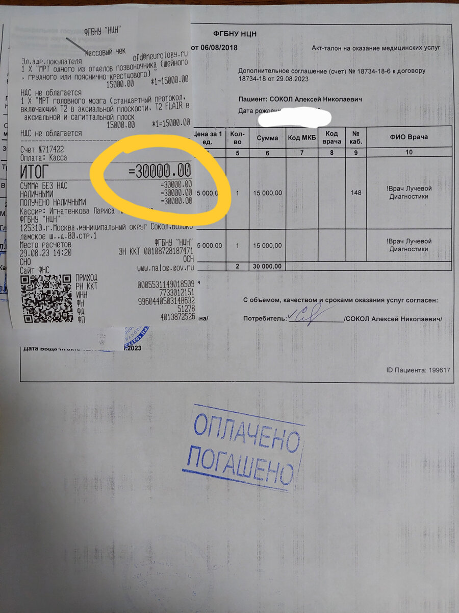 Я обещала рассказывать как живут люди с инвалидностью. Вот рассказываю. Каждый год люди с РС должен делать магнитно-резонансную томографию. Это необходимо для того, что бы назначить правильные дозировки лекарств. Результаты сравнивают с предыдущими МРТ. Обычно МРТ делают с контрастом. Но в случае с моим супругом, у которого астма и ему противопоказано контрастное вещество, ему МРТ делают на аппарате три Тесла. А он только в рамках платных услуг. Вот сколько мы вчера потратили из семейного бюджета.