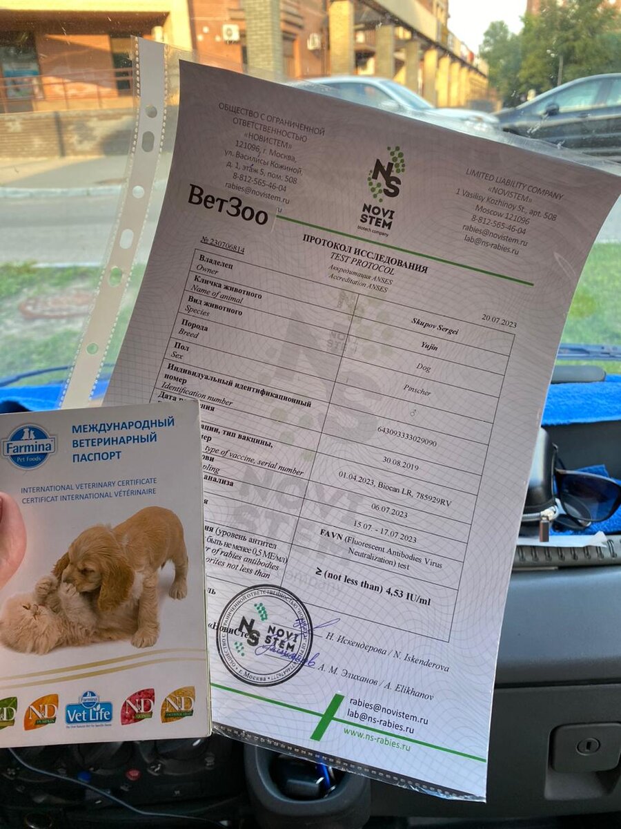 Чтобы путешествовать собакой заграницу нужны различные документы. Первое, что нужно это ветпаспорт с дублированием на английский язык. Следующие это прививка от бешенства, которая зарегистрирована в Евросоюзе, такие как НОБИВАК или БИОКАН. В Турцию также требуется вакцина против бордетеллы, но её никто не спрашивает. Обязательно животное должно быть чипировано и иметь сертификат международного образца по титрам антител бешенства, которые можно получить во многих ветклиниках крупных городов, срок изготовления от 7 дней до 20 дней, цена начинается от 5000рублей. Далее по местожительству в государственной ветеринарной клинике вы должны получить ветеринарное свидетельство номер 1 стоимостью около 1000 рублей, действует оно всего 5 дней. Основная его роль быть замененным на ветсертификат А5. Обмен осуществляется в аэропорту либо в региональном Россельхознадзоре. После осмотра животного и проверки чипа, вам выдадут ветсертификат А5. Из нашего личного опыта при проезде через пограничный пут