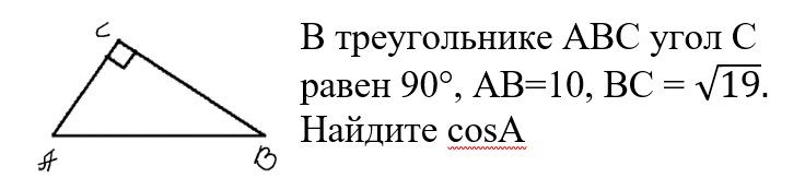 В тригонометрии прямоугольного треугольника четко нужно понимать, где прилежащий и противолежащий катет. Об этом можно прочитать здесь. Рассмотрим решение следующей задачи: Вспомним определение косинуса острого угла прямоугольного треугольника: Запишем отношение для нашего треугольника: Для нахождения CosA нам необходимо найти сторону АС. Воспользуемся теоремой Пифагора Вычислим значение CosA Поблагодарить легко! Буду весьма признателен, если поделитесь этой статьей в социальных сетях, поставите лайк и подпишитесь на мой блог