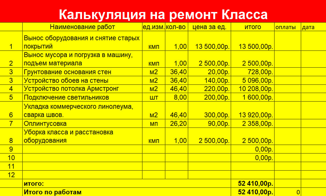 Собрание намечалось через неделю, но Шурик не стал откладывать в долгий ящик. В тот же вечер, была составлена калькуляция, осмечены все работы и материалы. Зная количество учеников в классе, Шурик даже догадался сумму затрат разделить на 30 учеников.