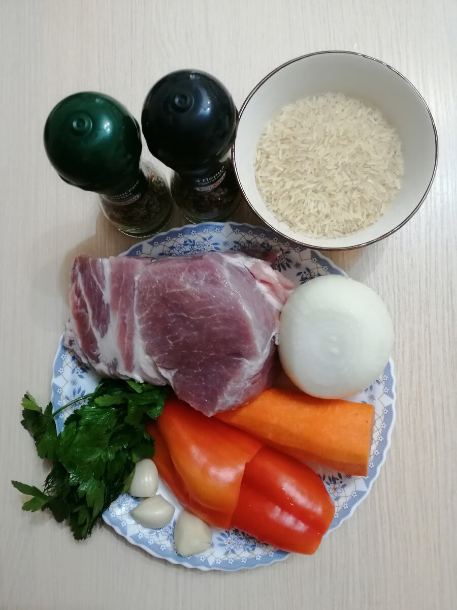 Сегодня готовим всеми любимое блюдо. "Пловом" его называть не буду, чтобы в меня не полетели 🍅, т. к. готовить буду не в казане, и специи буду использовать свои любимые. Всё равно получится очень вкусно! Нам понадобится мясо 400 гр. (у меня свиная шейка) рис пропаренный 300 гр. , одна луковица, одна морковь, один болгарский перец, 3 зубчика чеснока, соль, перец и зелень. В приготовлении будем придерживаться классического рецепта. Мясо обжариваем до румяной корочки. Перец и лук нарезаем кубиками, морковь натираем на крупной тёрке. Добавляем овощи к мясу и тушим минут 20, сверху выкладываем промытый рис, разравниваем его по всей поверхности и заливаем водой, чтобы покрывала рис, добавляем целиком наш чеснок, соль, перец и тушим на медленном огне под крышкой, не перемешивая 40 минут. Рис должен получиться рассыпчатый. Готовое блюдо посыпаем нарезанной зеленью. Приятного аппетита!