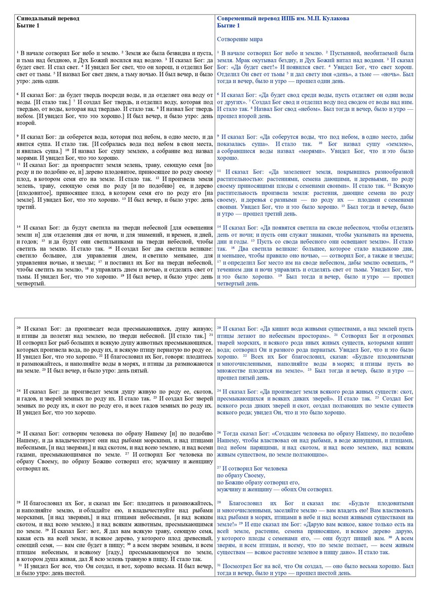 Сравнивая переводы Библии. Бытие 1