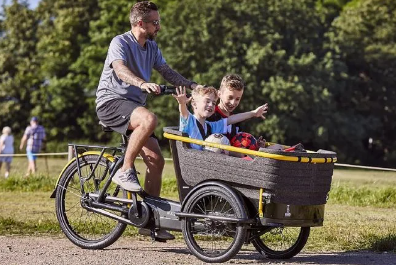 Необычный карго электробайк Raleigh Stride 3 вышел на свет, и это больше похоже на мини-автобус, чем на обычный велосипед. Разработанный известным британским брендом велосипедов, он призван удовлетворить потребности как для грузовых перевозок, так и для комфортной доставки детей в сады и школы, став экологической альтернативой автомобилю. Главной особенностью Stride 3 является его передний отсек, который способен вместить до четырех детей или вес до 100 кг. Сущность этой модели заключается в его конструкции: стальная рама, пара передних колес диаметром 20 дюймов и заднее приводное колесо диаметром 26 дюймов. Габариты велосипеда составляют 258 x 78 x 110 см, а его масса - до 75 кг в зависимости от установленных багажных аксессуаров. Передний багажник выполнен из алюминиевых труб и дополнительно защищен вставкой из вспененного материала EPP. Его функциональность расширяется с помощью дополнительных аксессуаров, таких как защитная крыша от дождя, детские сиденья с ремнями безопасности и к