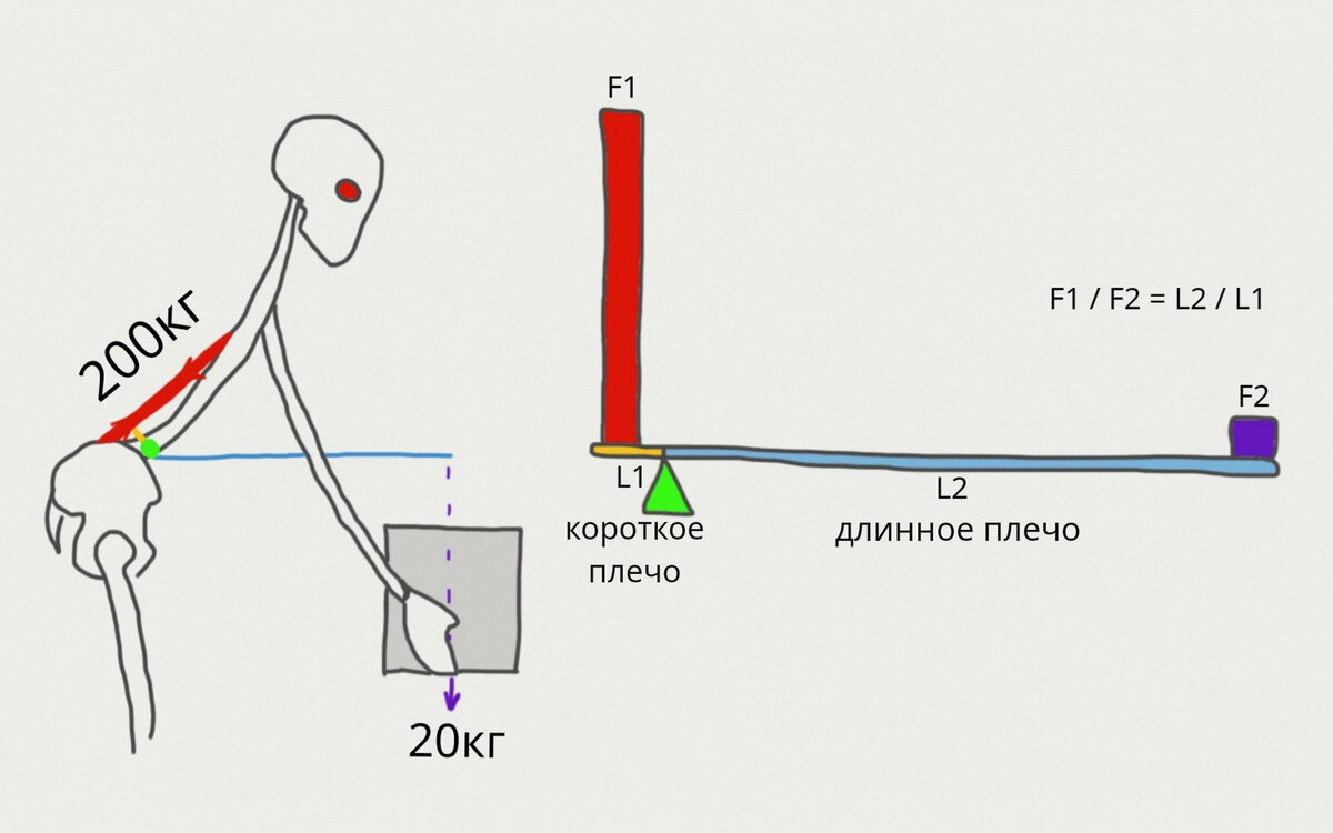 «Дайте мне точку опоры, и я переверну Землю!» Гениальный Архимед впервые описал принцип действия рычага. А в опорно-двигательном аппарате рычаги буквально повсюду. Позвоночник можно рассматривать как рычаг первого рода. В нём точка опоры лежит между точками приложения сил. Бытовые примеры рычагов первого рода — ножницы✂️ и весы⚖️. В рычаге‐позвоночнике точка опоры находится на уровне межпозвонкового диска. Плечо рычага, которое находится сзади от точки опоры, практически всегда будет намного короче плеча рычага, находящегося спереди. Особенно ярко эта диспропорция проявляется при наклоне туловища вперёд, когда разница плеч рычага может быть 1:10 (и даже более). Чтобы скомпенсировать проигрыш в расстоянии, организм сокращением мышц поясницы развивает силу, в 10 раз превышающую силу на длинном плече рычага (верхняя половина тела + груз). А это неминуемо создаёт хорошую такую компрессию дисков и тел позвонков. Хорошая новость: правильная техника движений позволяет значительно