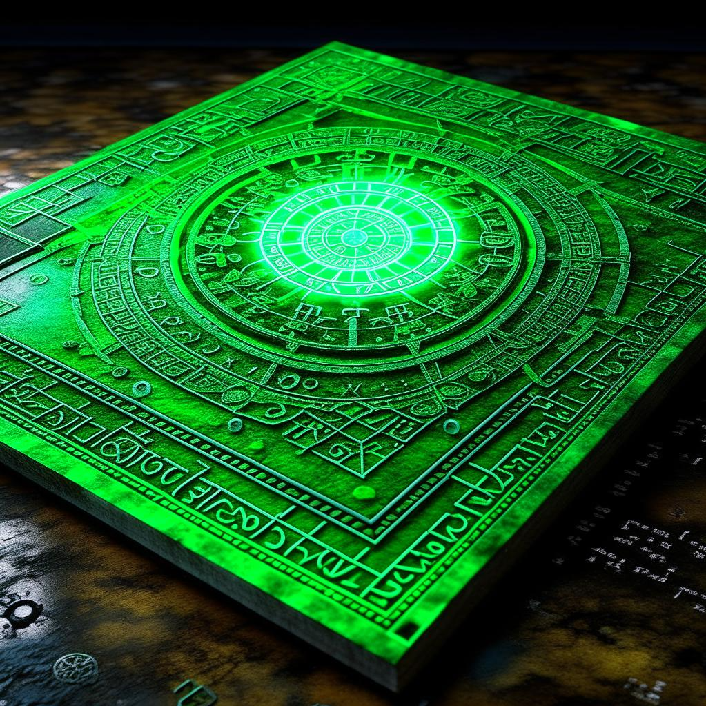 "Изумрудная Скрижаль" представляла собой прямоугольный предмет со священным текстом, вырезанным с использованием алфавита, подобного финикийскому. По преданию эта табличка была сделана на крупном кристалле изумруда, добытого, по всей видимости, в легендарных копях, получивших впоследствии имя египетской царицы Клеопатры.