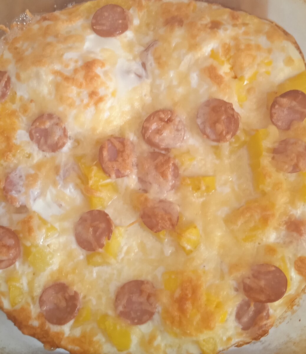 Сегодня вам расскажу про свой любимый рецепт завтрака, надеюсь, что и вам очень понравится. Рецепт без всяких заморочек, легко и быстро приготовить, а самое главное, что очень вкусно, будете готовить каждый день. Ингредиенты: Отварной картофель -2 -3 шт. Яйца куриные-3-4 шт. Сосиски или варëная колбаса без жира- 100-200 гр. Сыр полутвëрдый-50-100 гр. Майонез-по вкусу. Соль-по вкусу. Перец чëрный молотый- по желанию, по вкусу. Масло подсолнечное для смазывания- по вкусу. Приготовление: Отварной картофель без кожуры ( я обычно отвариваю вечером) -нарезаем на кусочки. На смазанную маслом форму выкладываем картофель,солим, сверху выкладываем нарезанные сосиски или колбасу. Дальше разбиваем яйца, желтки протыкаем вилкой, солим. Смазываем майонезом, сверху посыпаем тëртым сыром. Выпекаем при температуре 200 градусов около 20-30 минут. При желании готовое блюдо можно посыпать зеленью. Спасибо, что дочитали мою статью до конца. Пишите в комментариях понравился ли вам рецепт. П
