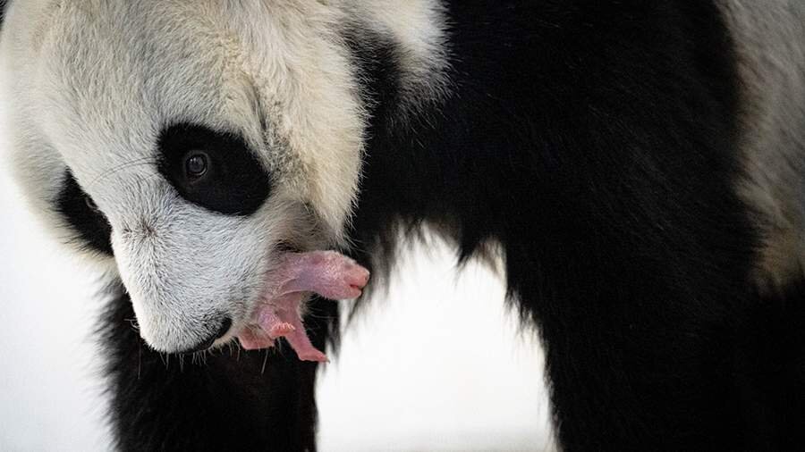 В Московском зоопарке показали видеокадры, на которых первый родившийся в России детеныш большой панды. Ролик опубликован 30 августа. На кадрах самка Диндин поднимает слепого детеныша, родившегося без шерсти, на свой живот. После этого панда закрывает его лапами, как бы скрывая от видеосъемки. «Наша Диндин проявила большую заботу и сразу приняла малыша. За самкой круглосуточно наблюдают и берут все необходимые анализы», — отметил Московский зоопарк в своем Telegram-канале. Пара панд Жуи и Диндин молоды: им семь и шесть лет соответственно. Обычно первый детеныш рождается у этих животных, когда родители достигают 8–10 лет. О том, что в Московском зоопарке родилась панда, сообщил ранее в среду мэр столицы Сергей Собянин. Он отметил, что это очень редкое и уникальное событие произошло благодаря специалистам из РФ и Китая. Две панды прибыли в Москву в 2019 году в честь 70-летия установления дипломатических отношений между Россией и Китаем. Для их приезда подготовили вольерный комплекс на те
