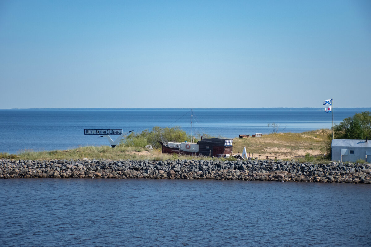 Утром 2 августа 2023 года мы вышли из Волго-Балтийского канала в Онежское озеро. На кораблике, отмечающем границу канала и озера, какие-то шутники написали название «Непокобелимый». Примерно за 6 часов мы пересекли Онежское озеро и подошли к архипелагу Кижских (Онежских) шхер. Прошли мимо Большого Климецкого острова, на берегу которого находятся полуразрушенная Никольская церковь, расположенная рядом с ней новая Тихвинская церковь и примерно в четырех километрах от этих двух церквей – деревянная часовня иконы Божией Матери "Знамение". Все эти строения были хорошо видны с борта теплохода. Остров Кижи плоский. Основные достопримечательности можно рассмотреть уже с палубы теплохода при подходе к острову. Путь от причала ведет к кассам музея-заповедника «Кижи». Туристов с теплоходов пропускают организованно по группам, т.к. стоимость экскурсии входит в стоимость круиза. Территория музея-заповедника превращена в огромный ухоженный газон. Совсем недалеко от входа в музей-заповедник находится