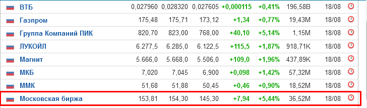 Народ конечно или знал или в инете ответ нашел, но к концу дня 18 августа ответ нашли все желающие. И дружно вечерком после работы ломанулись к своему брокеру от Альфа-банка скупать акции Мосбиржи с Мосбиржи.