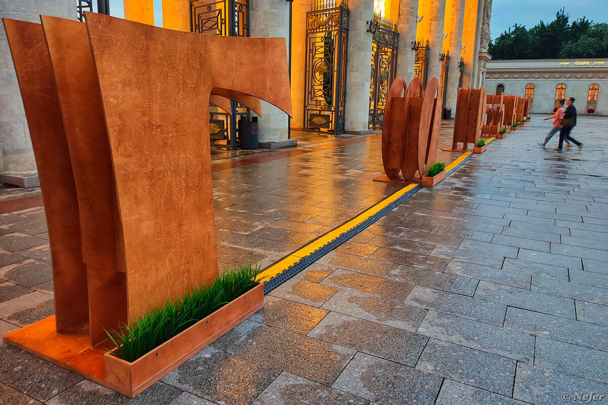 В Москве проходит фестиваль "Горький в Парке Горького", ежегодное событие в области искусств. Концерты, спектакли, театрализованные шоу и все такое. Это возможность увидеть креативные постановки российских режиссеров. Привозят спектакли, вызвавшие интерес публики в региональных театрах. Московские конечно тоже показывают. Из того, что сразу привлекает внимание: постановки "Горько" и "Горький татарин", цирковое шоу "ГорькийЛэнд", музыкальный медиаспекталь "Горький, удалить из друзей". В этом году двойной юбилей, во-первых, 95 лет Парку Горького, во-вторых, со дня рождения Максима Горького исполнилось 155 лет. Я отслеживала начало фестиваля и пошла прямо в первый день на открытие. Впечатления неоднозначные. Украсили арку главного входа, висюльки похожи светящиеся макароны. Инсталляция называется "Время вперед". Почему - загадка, ничто как бы не намекает. Сразу за входом арт-объект в виде сгруппированных букв и баннер с лицом писателя. Подумалось: вот ты умер, а из тебя мультяшку сделали.