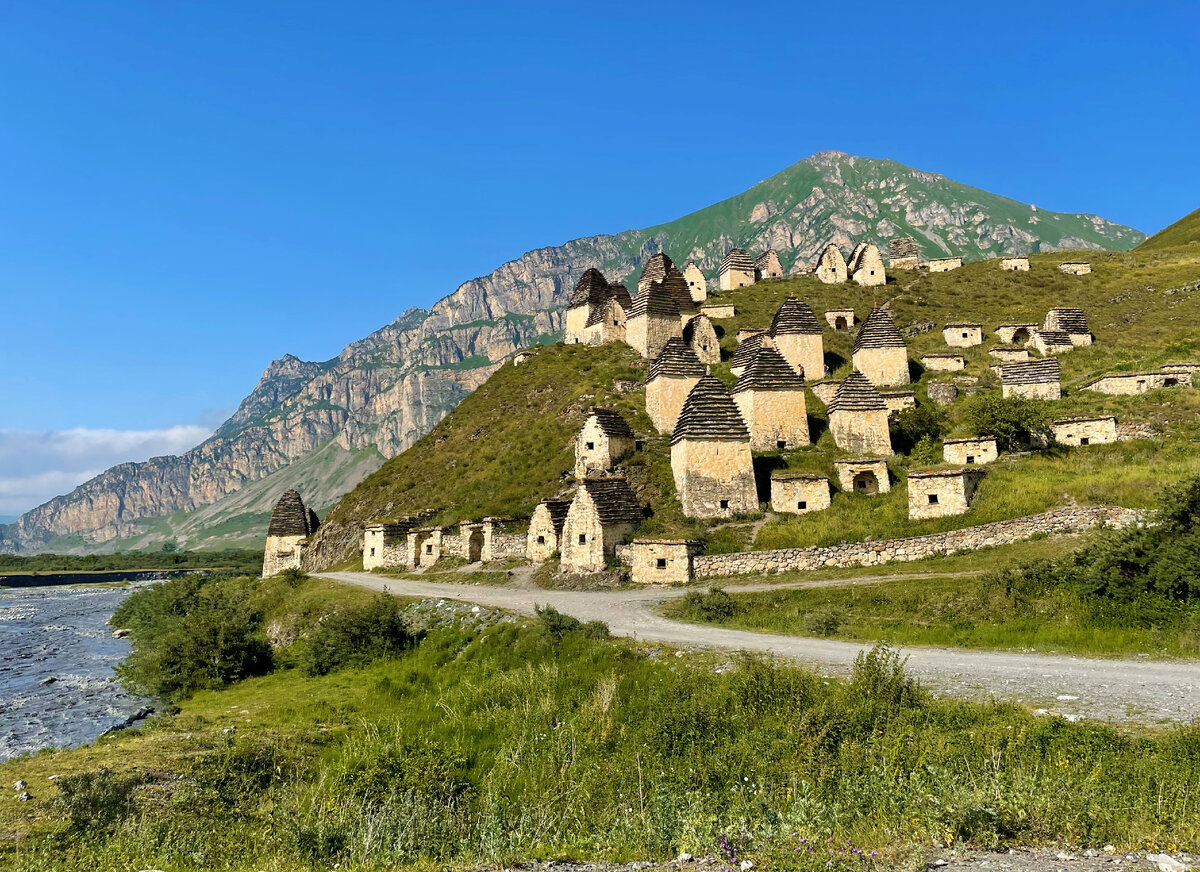 Прежде, чем ехать в это место, нужно осознавать зачем вы сюда едете и с какой целью. Хотя, домики на холме являются теперь достопримечательностью Северной Осетии, и любой турист стремится посетить это место, следует с уважением относиться ко всему, что здесь есть. По сути, вы попадаете в необычный некрополь, где нашли свой последний приют более 10 тыс. человек. Место очень атмосферное, с богатой историей и завораживающими видами Даргавской котловины. Дорога к селению Даргавс. Протяженность маршрута составит чуть более 60 километров если ехать к Даргавскому поселению из Владикавказа, что мы и сделали. Время в пути примерно час с небольшим, но можно ехать гораздо дольше. Да и так и получилось, гораздо дольше, потому что все время мы где-нибудь да останавливались, то фото сделать, то умыться из горного родника. Более конкретный маршрут такой. Едем по трассе А-162, затем сворачиваем на горную дорогу и едем до села Кармадон. Далее будет Даргавс. Обратно мы ехали по другой дороге через Дар