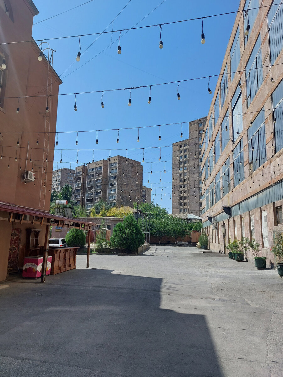 Во время нашего пребывания в Ереване, нам посчастливилось попробовать что-то новое — кулинарный мастер-класс. Вероятно, сами мы бы даже не подумали об этом, но "Лето вместе" от Яндекса подарило нам этот интересный опыт. Мы отправились на мастер-класс в уютную кулинарную студию Седрака Мамуляна. Эта студия расположена на территории коврового завода. Пока мы ждали нашего куратора, у нас был шанс погулять по территории и рассмотреть некоторое количество ковров, выставленных на территории завода. Суть этой студии заключается в том, чтобы возродить забытые и утерянные рецепты из разных уголков Армении и передать эти знания как профессиональным поварам, так и всем желающим. Студия оформлена двумя отдельными помещениями, одно из которых спрятано за красивой металлической дверью и служит местом для проведения школ для поваров. Мы же были в другом помещении. Нас ждал небольшой, но безумно уютный класс. Декор студии привлекал внимание множеством деталей, которые создавали особую творческую атм