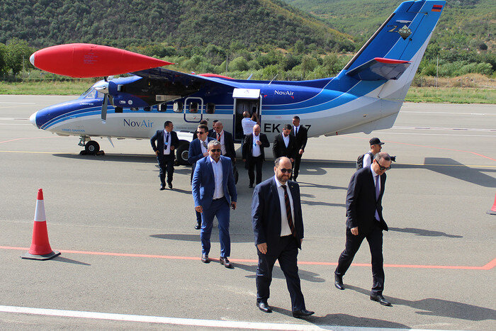 Глава аппарата премьера Араик Арутюнян и секретарь Совбеза Армен Григорян представительским рейсом из ереванского аэропорта «Звартноц» вылетели в Капан по случаю Дня города, сообщает пресс-служба кабмина. В аэропорту «Сюник» их встретили губернатор Сюникской области Роберт Гукасян и другие официальные лица.