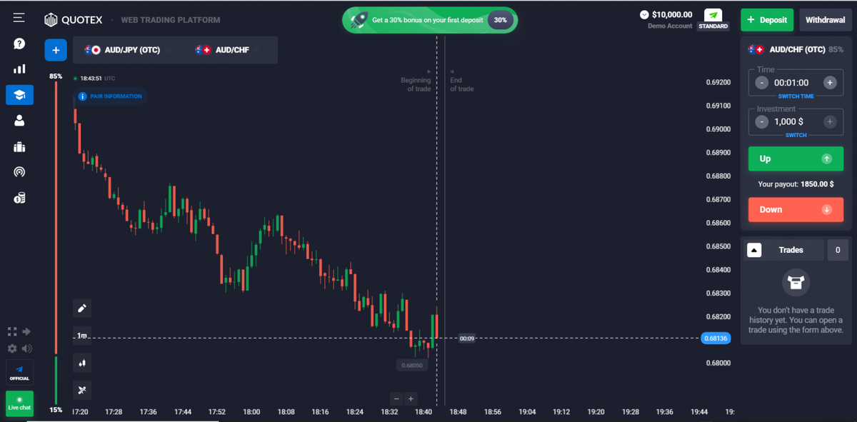 Кроме того, quotex предлагает своим клиентам возможность использования демонстрационного счета для тренировки и отработки стратегий торговли без риска потери реальных средств. Это особенно полезно для новичков, которые только начали знакомиться с бинарными опционами.
