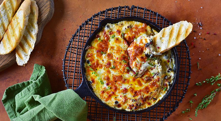 Когда-то давно почти никто не готовил жюльен с грибами дома просто на ужин – в СССР это блюдо считалось ресторанным или праздничным. Хотя что в нем сложного-то, особенно, если он на сковороде, а не в кокотницах в духовке? Грибы с луком и мукой обжарил, соус приготовил, с сыром под крышкой подержал – и готово! Такой жюльен особенно вкусно есть с хорошо поджаренными тостами их чиабатты или багета. ИНГРЕДИЕНТЫ ПОШАГОВЫЙ РЕЦЕПТ ПРИГОТОВЛЕНИЯ Шаг 1 Для жульена с грибами на сковороде сначала очистите лук и нарежьте как можно мельче. Лесные грибы при необходимости промойте, а лучше протрите салфеткой, как и культивируемые. Нарежьте грибы средними кусочками. Шаг 2 Разогрейте на сильном огне большую сковороду с растительным маслом. Положите лук, обжаривайте 3 мин. Шаг 3 Добавьте к луку грибы, обжаривайте на максимальном огне, все время перемешивая, 3 мин. Посыпьте мукой, уменьшите огонь до среднего, обжаривайте 2 мин. Шаг 4 Снимите с огня, добавьте сливки и сметану, посолите, поперчите, тщатель