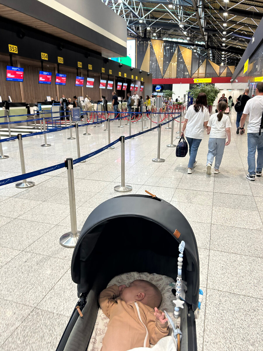 Когда мы приняли решение, что летим в следующую командировку с нашим младшим сыном, которому вот-вот исполнится 3 месяца, то много раз представляла себе, как это будет. Даже тревожилась. Я – частолетающий пасссажир, но даже у меня нет ответов на множество вопросов, связанных с полетом младенца. Как лететь с полноценной коляской, оформлять ли ее в багаж негабаритный, сколько это будет стоить, как проходит процедура досмотра, как строится очередь и есть ли в этом плане «скидки» для младенцев, а, самое главное, как мой малютка перенесет сам полет и мн. др. От этого вороха мыслей пухла голова, но ответов разом на все найти не получалось.