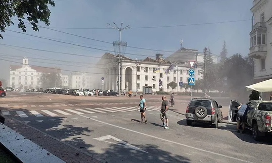 В украинском Чернигове произошел взрыв в Музыкально-драматическом театре. Видеозапись с последствиями произошедшего разлетелась по соцсетям. На кадрах видно, что у театра сгорела крыша, а в домах по соседству повреждены окна.