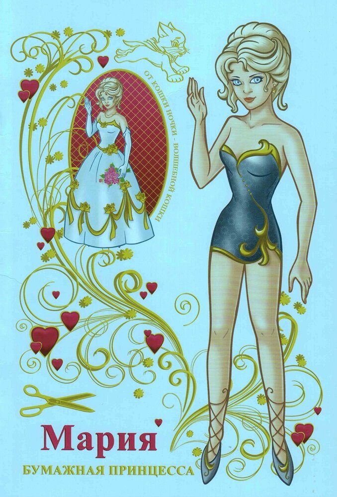 Название: Мария Бумажная Принцесса Страна: РФ Серия: от кошки Ночки - волшебной кошки Издательство: студия Евы Никольской Год: 2009 Все четыре куклы из этой серии, доставили мне невероятное разочарование. Никогда бы не купила полный комплект, если бы знала то, о чём хочу вам сейчас рассказать... Сегодня знакомлю вас с Марией, первой куклой из этого комплекта. Скинтон куклы нереальный, фэнтезийный. А элементы тела, нарисованные с одеждой, на оголённых местах, имеют естественный тон кожи, тем самым, создают дикий диссонанс, бросающийся в глаза. Подобное несоответствие или явные промашки художника, наблюдаются у всех четырёх кукол данной серии. Гардероб же куклы, напротив, достоин похвал. Он очень обширен. Наряды в нём классные, особенно сказочные, бальные платья.