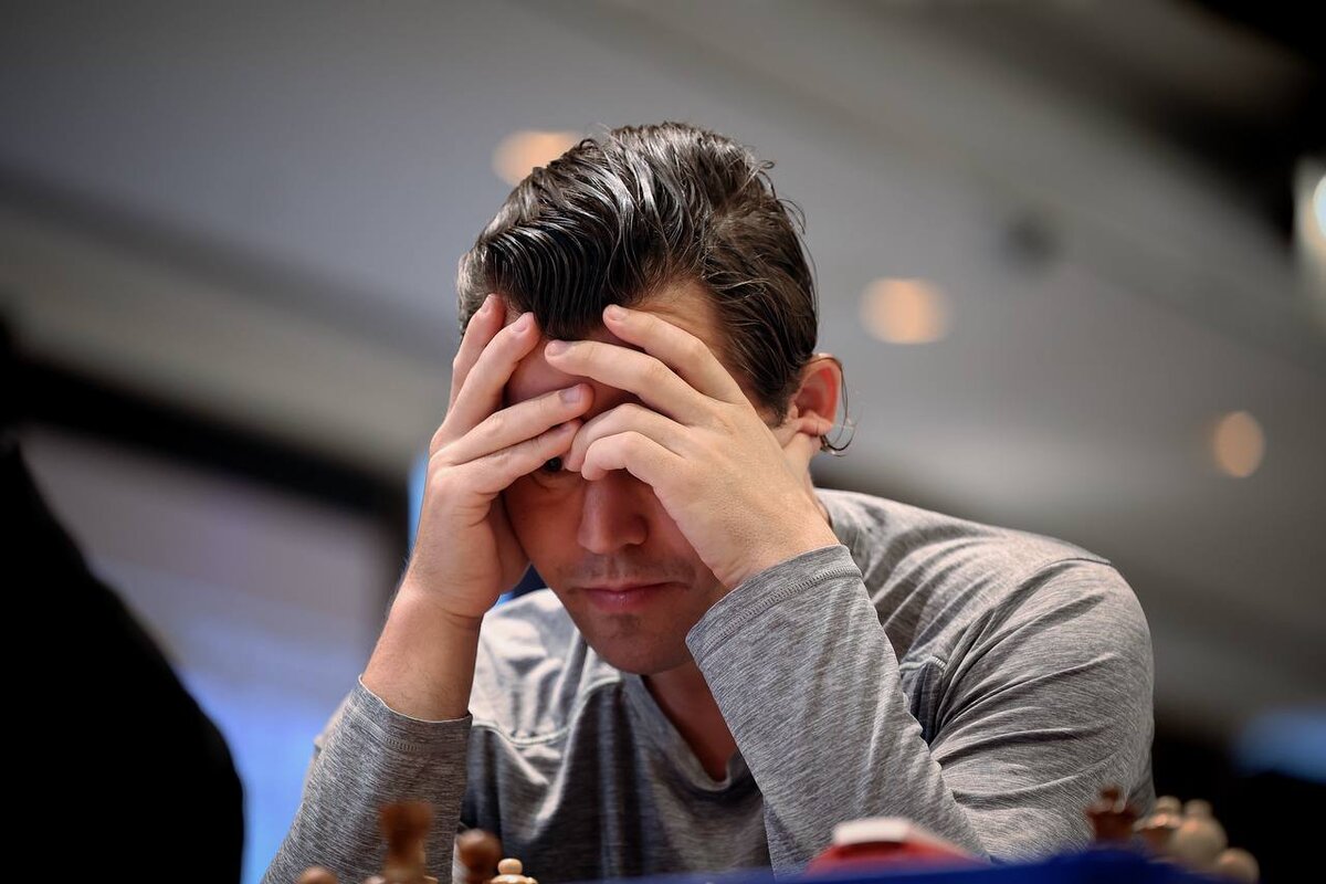 Начнем с дуэли между Фабиано Каруаной и Рамешбабу Прагнанандхой, которые разыграли итальянскую партию. С самого начала наметилась тенденция на тотальные размены. Никто не строил молниеносной атаки. Позже на доске возник ладейный эндшпиль, где у каждого шахматиста было по три пешки на одном фланге. И партия ожидаемо завершилась вничью. Гораздо интереснее было смотреть на битву между экс-чемпионом мира и хозяином турнира, который стартовал со скромного 97 места на Кубке. Магнус Карлсен играл белым цветом и в возникшей сицилианской защите не стал отсиживаться в обороне, атакуя уже десятым ходом 10. g4. В позиции, представленной ниже, Магнус неожиданно допускает грубый просчет 34. Фh2?? И в этот момент Ниджат Абасов мог создать серьезные проблемы своему тит