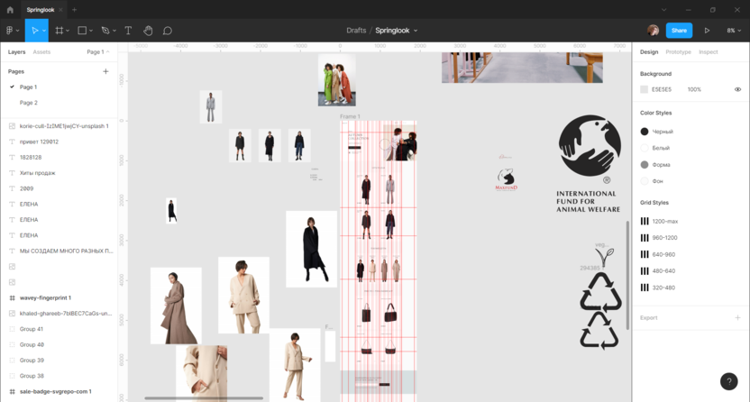 Выглядит все это примерно так: фреймы, слои, элементы, сетка и много дизайна.