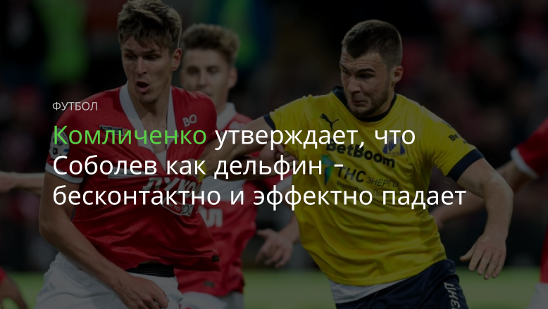 "Когда "Спартак" назвал матч с "Ростовом" схваткой двух "дельфинов", что я об этом думал? Собственно, мне все равно. Хотя мы с Соболевым много смеялись на эту тему, споря о том, кто из нас настоящий "дельфин". И что выяснили? Выяснили, что это он. По каким признакам мы так решили? Он падает гораздо эффектнее, без контакта", - приводит слова Комличенко Sport24.