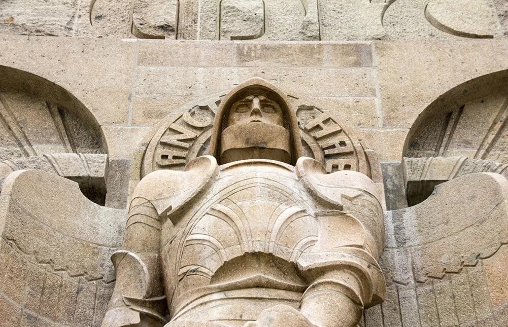 Начнем с внешнего вида памятника.Дело в том, что внутри у него расположен своеобразный музей, в котором хранится множество артефактов, касающихся того самого сражения. Ко входу ведут две лестницы, которые венчают головы Фридриха Барбароссы. Это бывший король Германии, еще в период с 1152-го по 1155-й годы. Гитлер был просто помешан на Барбароссе и довольно часто использовал его в пропаганде. Да и сам памятник был своеобразным символом пропаганды третьего рейха. Это ведь был один из символов немецкого оружия. Многие фотографии, где Гитлер выступает с трибуны, были сделаны как раз у данного памятника. Такая великая битва, да еще и победили в ней немцы. Правда забывали упомянуть - "в том числе" немцы. Но все никак не вязалось, что вместе с немцами Наполеона тогда разбили русские. Более того, именно русские, по сути, и одержали победу, остальные войска были постольку-поскольку. Но никак это не вязалось с великим немецким солдатом и тем, что против русских как раз предстояло воевать.