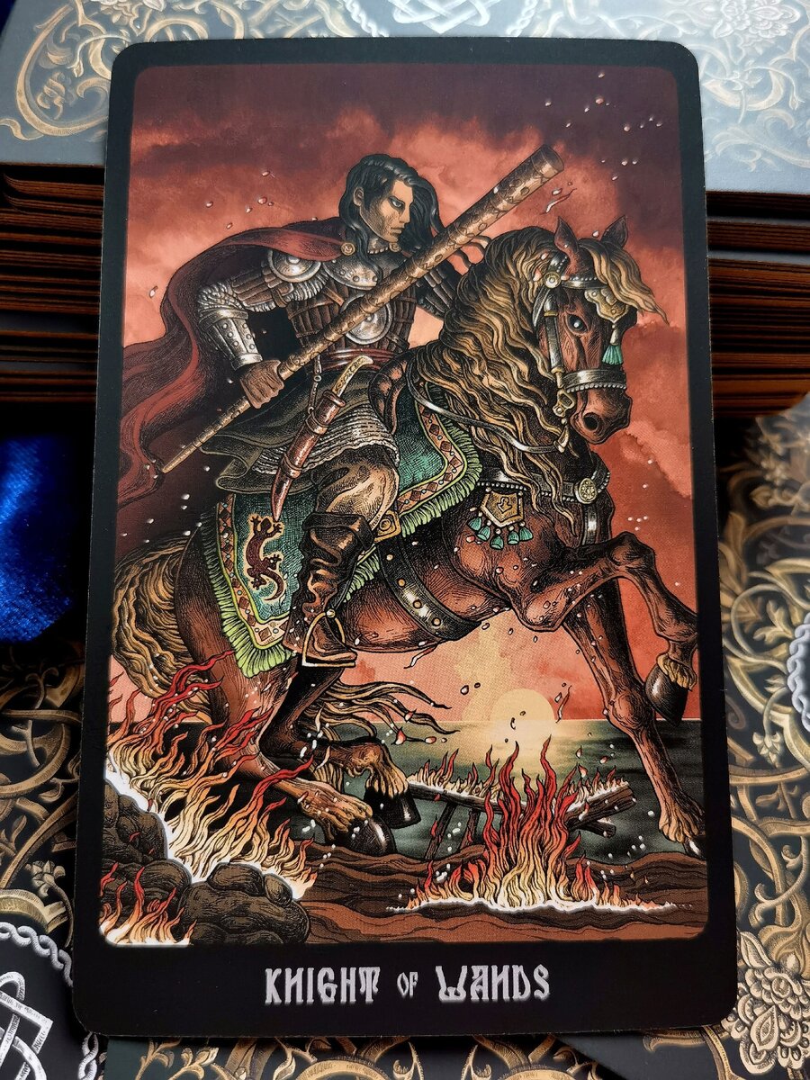 ...Рыцарь Жезлов отражает изменение и продвижение к цели. Он – индивидуальность, полная отваги и страсти. Его дух пылает огнем, который