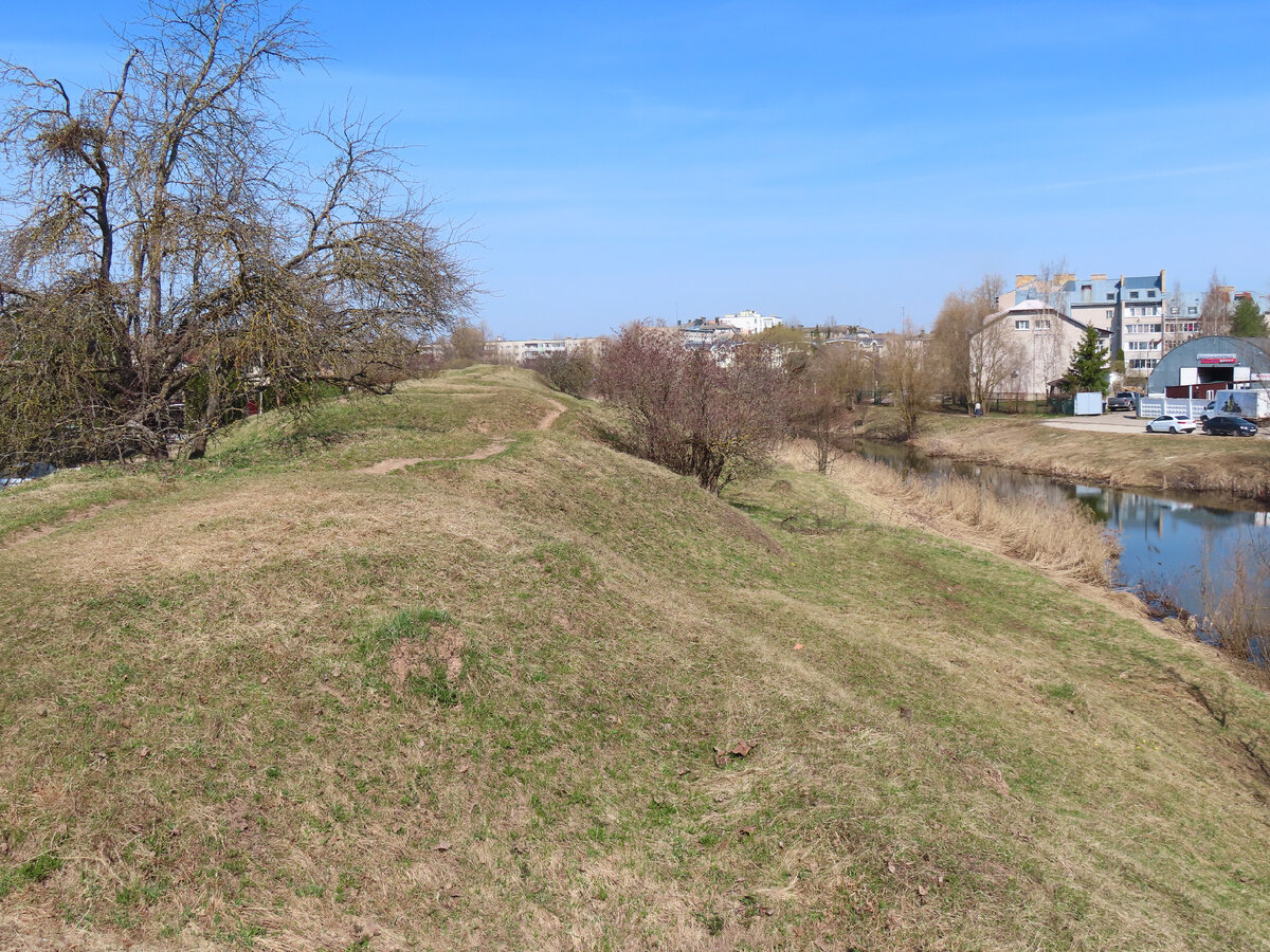 Детинец (Кремль), о котором я уже писал, был не единственным оборонительным сооружением Великого Новгорода. Вокруг Детинца существовало ещё два ряда укреплений. При Иване Грозном на Софийской стороне в 100-150 метрах от стен Детинца был построен Малый Земляной город, состоявший из земляного вала и деревянной стены на нём, окружённых рвом с водой. От этого сооружения к нашему времени не осталось ничего. Самым большим кольцом укреплений, которые опоясывали Новгород по обе стороны Волхова, был Большой Окольный город. Укрепления по большей части представляли собой земляной вал, кое-где обложенный камнем, и стоявший на валу тын, забор из брёвен, вбитых в землю вертикально. В летописях это сооружение нередко называется «острогом», поскольку концы брёвен были остро заточены. С наружной стороны вала располагался ров, заполненной водой. Этот ров был не только препятствием для врагов, но также служил внутригородской водной дорогой, и обеспечивал дренаж территории города. В состав укреплений Окол