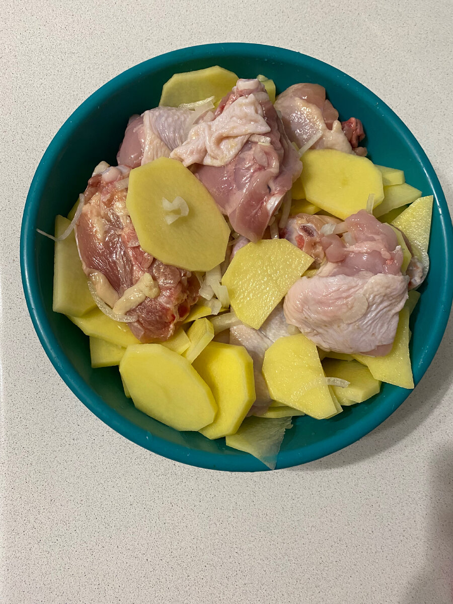 Быстро , посто , вкусно и без заморочек. Сегодня у нас печенная курица с картошкой. Нам понадобится: 5 Добавляем приправу, соль, перец по вкусу ( у меня вот такая) 6 Маринуем майонезом и я оставила это на 5-10 минут постоять. 7 Смазываем противень маслом, выкладываем нашу картошку с курицей на противень и отправляем в предварительно разогретую духовку . У меня курица и картофель запекались при 180-190 градусах , один час . Вот что у меня получилось Еще я решила сделать соус для курицы , он очень простой и вкусный. Можно взять сметану или майонез , добавить туда чеснока и укропа. Все это мы перемешиваем и получше очень вкусный соус, он подойдет для любого блюда требующего соус. На этом всё, спасибо что дочитали это до конца. Буду благодарна за лайк и подписку на мой канал. Будет много интересного , простого и вкусного.