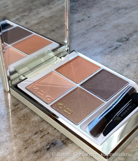 Сегодня покажу лимитированную палетку японского бренда Suqqu, которая пока что доступна для покупки. Палетка вышла в рамках летней коллекции, в нее бренд впервые включил переливающийся дуохром, который, как мне кажется, отлично вписывается в палитру флешмоба Оформление В этом выпуске палетки вышли в перламутровом футляре (стандартное оформление черное). Все так же есть два инструмента для нанесения — спонжик и двусторонняя кисть, вполне применимая в походные условиях. Есть достаточно удобное зеркало, крышка палетки фиксируется в любом положении. Тени сделаны в Японии, всего в палетке 6,2г теней на 4 рефила. Формула В эту палетку бренд включил два матовых (скорее даже сатиново-матовых) оттенка в классической формуле бренда. Они мягкие, средне пигментированные, даже темный отлично тушуется в мягкую дымку. Наслоить можно, но эффекта глубоких смоки добиться будет непросто. Также здесь появляется — насколько я могу судить, впервые у бренда — целый дуохром. И он действительно дуохромит, по ф