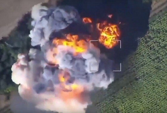Telegram-канал «Военкоры Русской Весны» опубликовал видео уничтожения солдат ВСУ FPV-дронами ВС РФ в зоне СВО. На кадрах видно, как российские барражирующие снаряды попадают в укрытия украинских военных. На первом видео показано, как беспилотник бойцов батальона имени Павла Судоплатова поражает укрытие солдат ВСУ, из которого они запускали квадрокоптеры. На второй записи видно, как дрон накрывает группу украинских военных под Ореховом на Запорожском фронте. Канал ранее сообщил, что танковые подразделения 1-й Славянской бригады Донецкого армейского корпуса ВС РФ нанесли удар по расположениям ВСУ на Авдеевском направлении. Танкисты успешно взаимодействуют с операторами беспилотников, которые помогают выявлять цели и корректировать огонь. На видео, которое опубликовали военкоры, можно увидеть, как оператор квадрокоптера обнаруживает местонахождение противника, укрепившегося в многоэтажном доме. Координаты цели передаются экипажу танка, и тот наносит прицельный удар. В результате стена зда