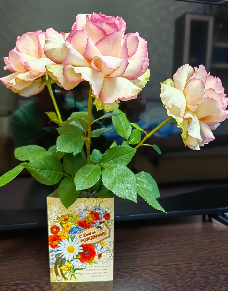 Всем привет! Вчера был самый необычный День рождения в моей жизни. И сначала я хочу от всей души поблагодарить вас за поздравления и тёплые слова. Признаюсь, что иногда даже слезы наворачивались, когда я читала ваши вдохновляющие слова. Это наверное и есть та награда за ведение блога. Не могу подобрать удачные слова, чтобы выразить свои чувства. Большое спасибо Наташе и ее мужу за то, что не только приютили меня у себя, но и составили мне отличную компанию за вечерним ужином. Прекрасные люди с открытой душой! Вот какие цветы они мне подарили: Я такие розы никогда не видела. Кто-нибудь знает, что это за сорт? Они шикарные!!! Теперь скажу, почему этот день стал самым необычным в моей жизни. Как ни крути, но все мы привыкли встречать свой праздник в кругу близких, принимать от них внимание. Внутри каждого из нас живет ребенок, и с годами это не меняется) Я же впервые в жизни не только была вдали от семьи, но и мысли мои переполняли не эмоции от дня рождения. Я была счастлива от то