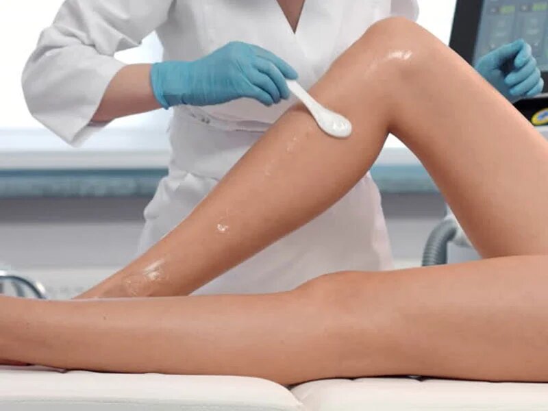 - Перед началом лазерной эпиляции специалист обрабатывает область очистки специальным гелем, отмечая точки, по которым будет производиться облучение лазером;