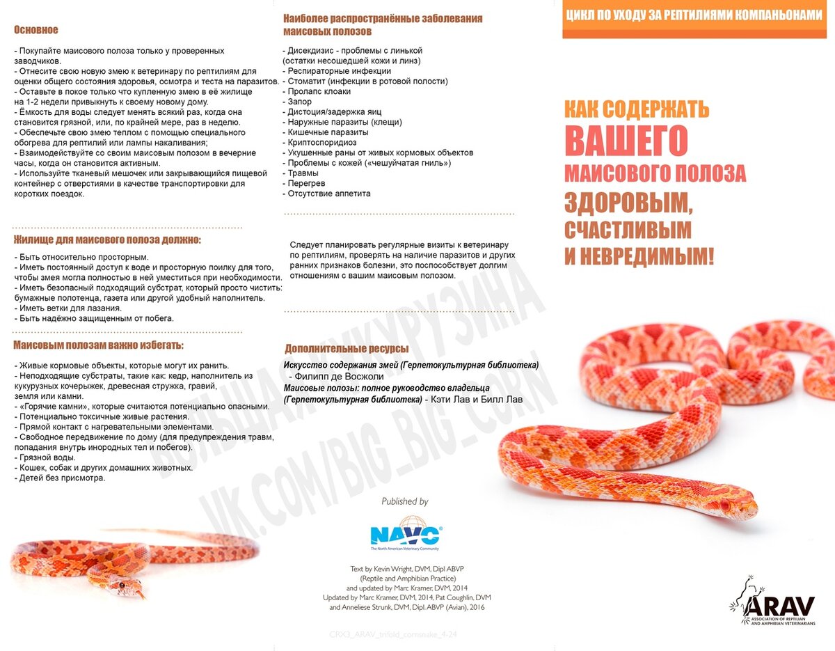 Итак, вы не просили, но я сделала! - перевела выложенный в самом низу материал о содержании маисовых полозов для совершеннейших новичков от ARAV (Ассоциации ветеринаров по рептилиям и амфибиям).