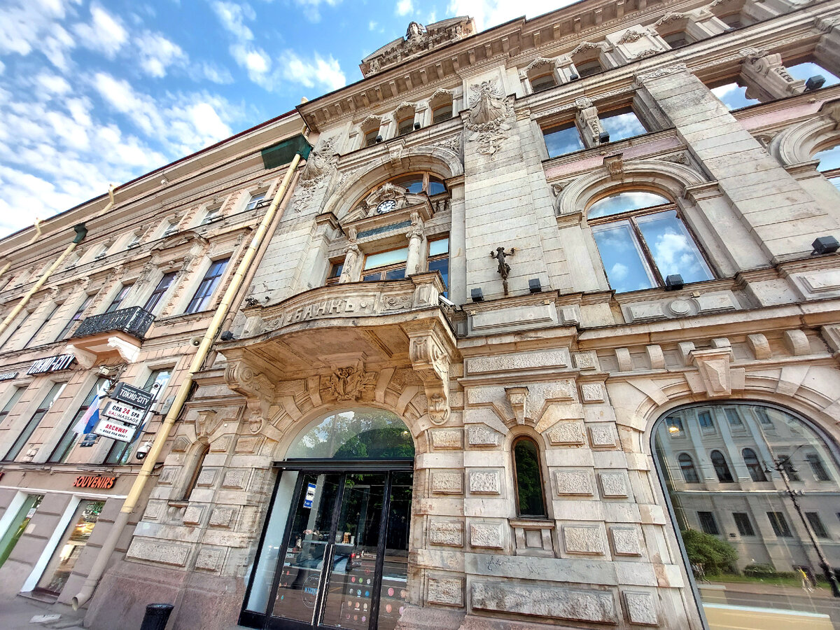 Каменная вывеска "Банк" говорит нам о том, что построен он был именно как банк, было это в далеком 1898 году, архитектор Б.И. Гиршович.