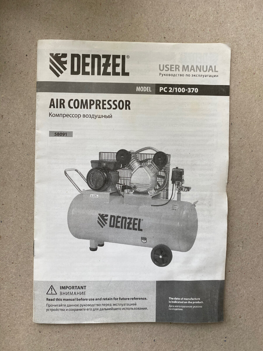 Обзор на воздушный компрессор Denzel PC 2/100-370 л/мин.