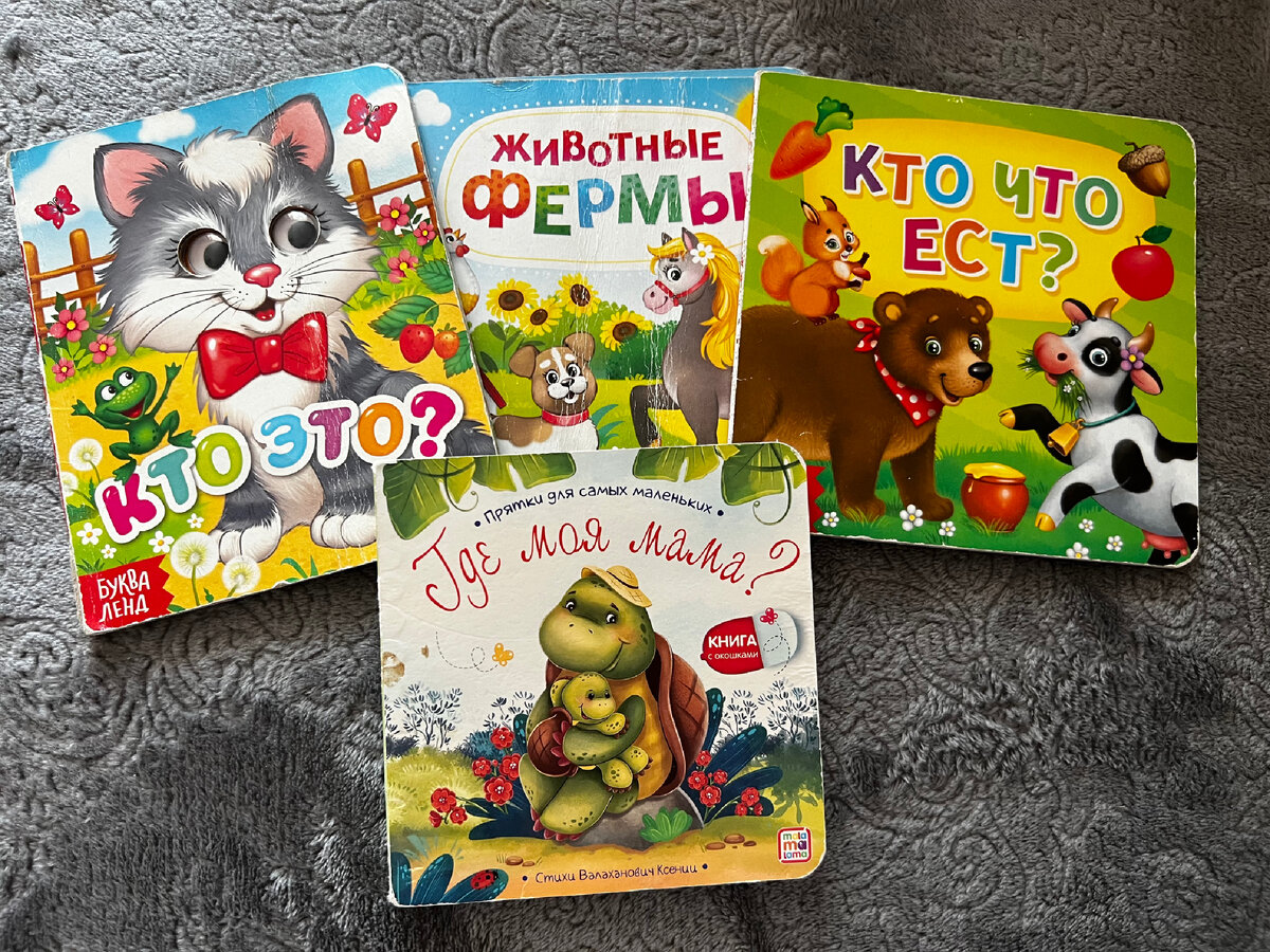 Всем привет! Одна из подписчиц просила сделать обзор книжек, которые мы с Герой любим читать. На самом деле книг у нас великое множество, я их постоянно покупаю😅 Здесь постараюсь рассказать про самые любимые. Книжки 1+ (или даже раньше) Примерно месяцев с 8-9 я начала давать Герману листать книжки. Он с удовольствием рассматривал картинки, а еще мял их и рвал😄 Поэтому первые наши книги - картонные. Хотя и они не остались в первозданном виде, сынок умудрился и их помять. Мне нравятся эти книжки тем, что они яркие, относительно прочные, у них простой сюжет и хорошие ритмичные стишки. Они не успевают надоесть даже самым маленьким детям. Мы их читали вплоть до 1.5 лет, и они продолжали нравиться ребенку. Отдельно среди этих книг хочу выделить книжки с глазками и книжки с окошками. Книжки с глазками полезны для развития указательного жеста, потому что малыш тыкает пальчиком в глазки, в это время можно ему повторять, что это глаза, или задавать вопрос «покажи, где глазки? Вот глазки».