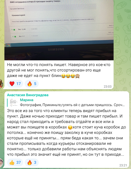 ВБ прибавляет работы В непринятых коробках рыться и искать товар ЗАПРЕЩЕНО. Вам приходит уведомление "готово к получению". И на многих пв принимают товар так: сканируют, подписывают и складывают в коробки, а потом только разносят по ячейкам. Приемка занимает больше часа. ВБ разрешает перерыв. Зачем клиенты врут,если есть камеры? Понимает она... если бы понимала, то 1 не ставила! При оформлении заказа у вас стоит галочка "согласен с правилами торговой площадки". Всем добра