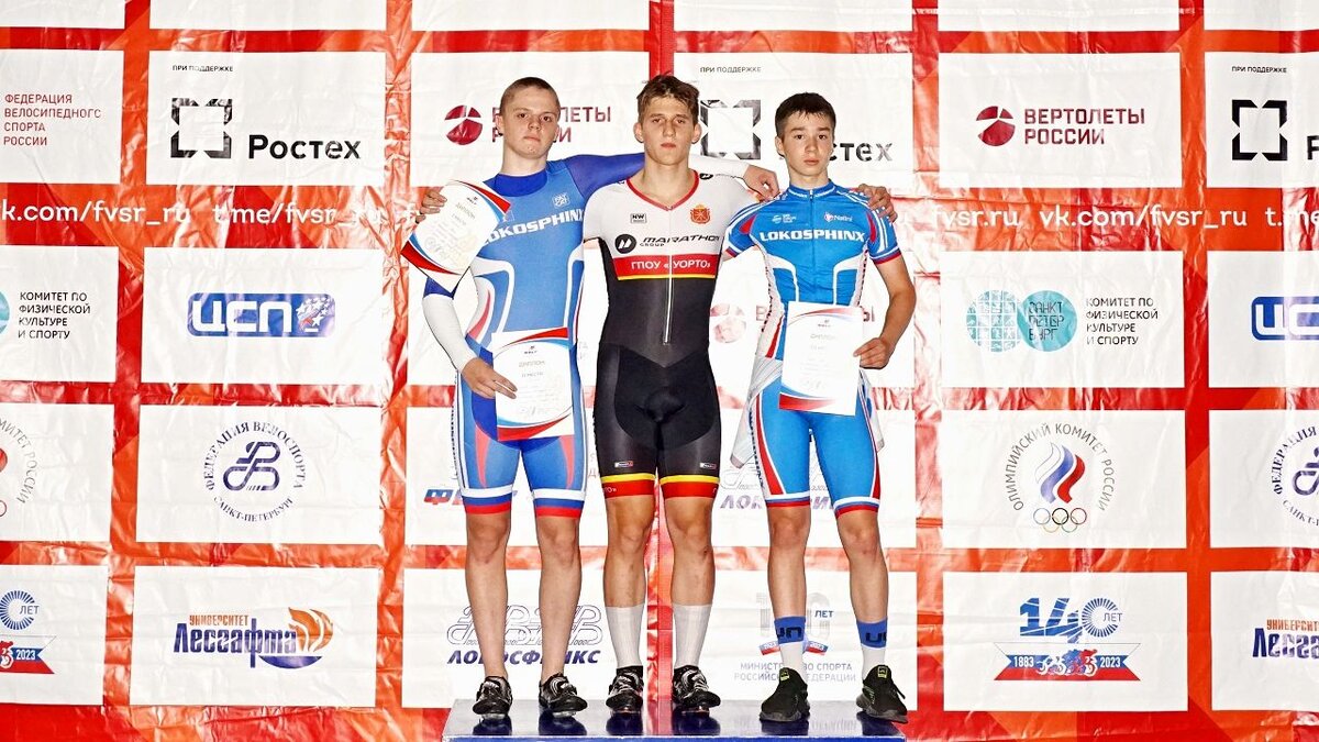 В Санкт-Петербурге на велотреке «Локосфинкс» продолжается первенство России по велосипедному спорту на треке среди юношей 15-16 лет. Во второй день соревнования – в субботу, 19 августа – борьба шла за медали: В спринте на 3 километра среди юношей победителем всероссийских соревнований стал велогонщик из Тульской области Артём Зыбин. Вторую и третью ступеньки пьедестала в этом виде велогонок заняли спортсмены из Санкт-Петербурга – Артём Цветков и Захар Мокеев. В воскресенье, 20 августа, соревнования продолжаются. В программе заключительного дня – групповая гонка по очкам и кейрин. Фото министерства спорта Тульской области