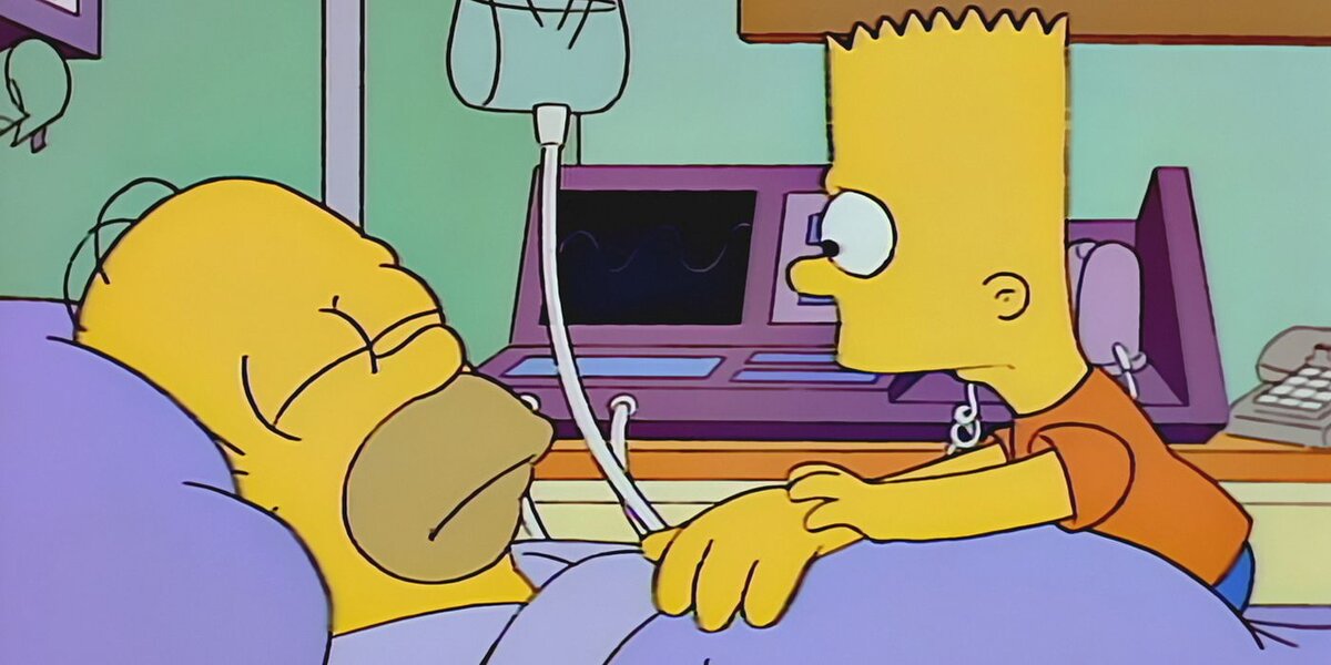 А вы когда нибудь задумывались над тем почему в Симпсонах происходят столь странные вещи, к ним приходят знаменитости, они убивают других, они оказываются невероятно умными. Для тех кто смотрел данный мультсериал с самого начала, они скажут что подобных странностей в начале было не так много, а что если я скажу что все это является комой Гомера? В эпизоде Гомер разыгрывает серию розыгрышей над Бартом, и, чтобы поквитаться, Барт взбалтывает банку пива Homer's с помощью шейкера для краски. Гомер открывает банку, что приводит к сильному взрыву, который приводит его в больницу, где он впадает в кому. Но давайте вернемся на пол года назад, а зачем узнаете немного позже. В серии, вышедшей на экраны в октябре 1992 года, Гомер встречается с Богом и задаёт ему один очень философский вопрос, в чем смысл жизни? Бог ему на этот вопрос отвечает то, что ответ он получит после смерти, которая случится через 6 месяцев. Ровно через полгода, в апреле 1993 года, выходит серия, где Гомер впадает в ком