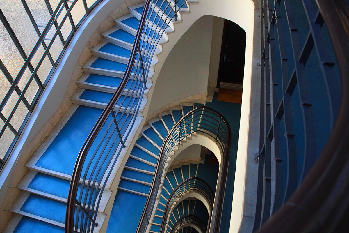 двумя неземной красоты парадными лестницами
