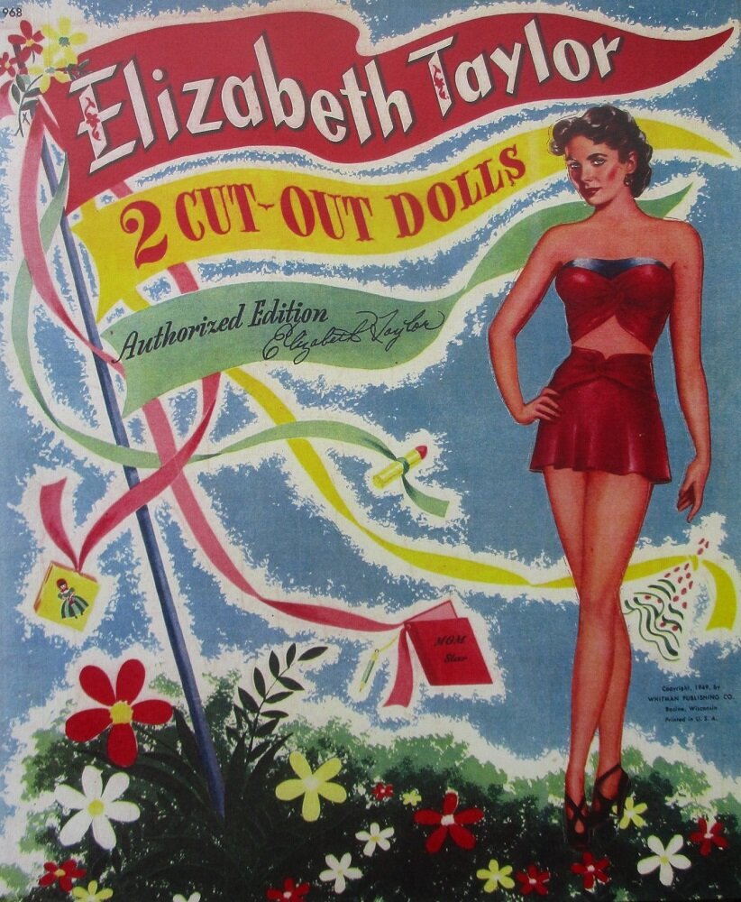 Название: Elizabeth Taylor Страна: США Год: 1949 Пришло время показать ещё один старый американский набор, созданный по прототипу известной киноактрисы Элизабет Тейлор. Я обожаю бумажных кукол - голливудских актрис, именно эта тематика одна из главных в моей коллекции. Эти куклы доставляют мне особое наслаждение, я готова пересматривать их снова и снова. В данный набор входят две куклы и множество разнообразной одежды, обуви и аксессуаров. Наряды Элизабет великолепнейшие, стильные, полностью отражающие моду 40-х. Глядя на них, мы сейчас из глубины времени, можем судить, как же изящно, грациозно, женственно, выглядели женщины того времени. Что здесь можно ещё сказать? Только - вау!!!
