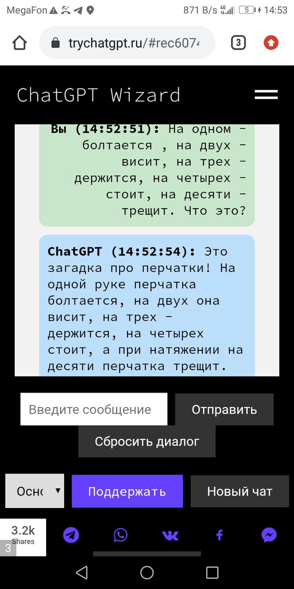 Всем известно, что ИИ отличается от человека, банально тем, что он не вбил в стену ни одного гвоздя за всю жизнь. Именно по этому СhatGPT не смог осилить старую, тупую загадку: (возможно, что через некоторое время разработчики этого фэкового ИИ заметят не ладное и внесут новый ответ в базу ответов на тупые вопросы, но поправка ответа на всего один вопрос не уменьшит отличие ИИ от человека) P.S. в телеграмме мне только-что очень точно подсказали, что chatgpt на столько не умеет работать руками, что даже не знает, о том, что у человека не может быть 10 рук. Число рук для ИИ это просто любое математическое число, в диапазоне от минус бесконечности, до плюс бесконечности P.S. (2) Пишу еще одно дополнение к данной статье. Только - что вспомнилось распространенное выражение сварщиков "не трогай, тяжелое". Все, кто хоть раз хватался за только - что сваренную деталь точно знают, что речь идет именно о температуре: Вы (16:27:58): Не трогай, тяжелое! О чем говорит сварщик? ChatGPT (16:28:18):