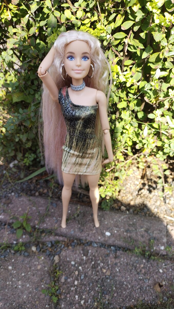 Всем привет !! Бывает , что роль для куколки приходит сразу , после распаковки , а бывает , нааборот, вроде куколка красивая , а роль подобрать не получается . У меня был такой случай с одной из куколок , но сейчас все хорошо , я нашла ей роль . А сегодня хотела бы показать вам девочку , роль которой я придумала сразу. Это Кристи Распоковав ее , я сразу увидела в ней что то нежное , милое . Она была как фея. И эта ассоциация помогла мне подобрать ей образ . Кристи одета в зелёное платье , оно такое необычное ! В нем считается несколько цветов . Зелёный , жёлтый и черный . Все это в блёстках . Но это не делает платье слишком ярким , нааборот , оно очень подходит моей цветочной фее .... На ножках сначала были зелёные босоножки , но моя фея не захотела их одевать , оно захотела почуствавать теплую и приятную травку под ногами . На шее у нее серебряный чокер , жаль что он не глянцевый. Он матовый , и не блестит на теплом солнце.... Волосы моей феи раздувает ветер . Они распущены и кра