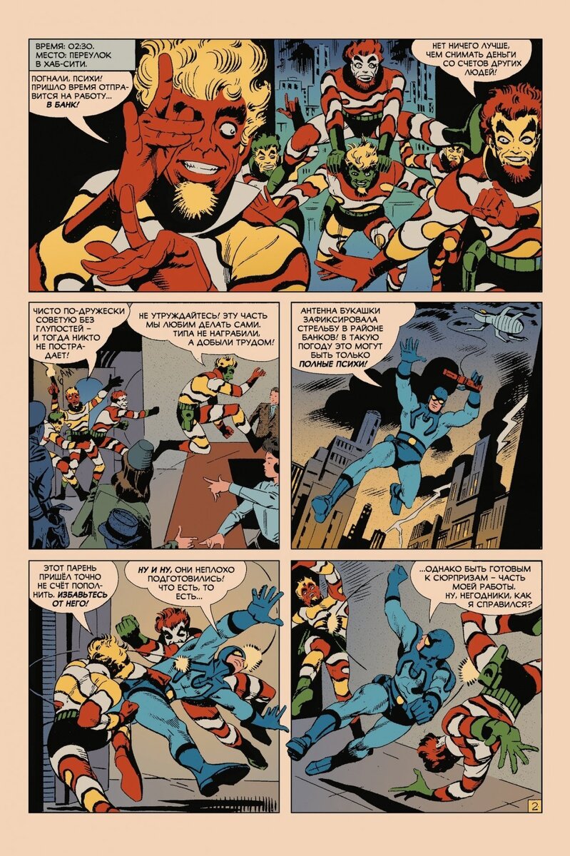 В связи с выходом в мировой прокат фильма Синий Жук от обновленной DC, было решено взяться за серию, которую выпускает Alpaca. Вообще выход серии Древние комиксы является с одной стороны странным, с другой стороны логичным решением. На первых страницах, читателю дают понять, что данные комиксы могут выпускать абсолютно все, поскольку авторские права на них истекли. И в этом плюс, потому что таких комиксов наберется достаточное количество и заморочек с роялти не будет. Минусом может послужить отсутствие интереса читателя к столь старым сюжетам. Сейчас серия не такая многочисленная на данный момент, но ее преимуществом является то, что выпускается она в синглах, а значит есть шанс привлечь новых читателей к этой серии. В этот комикс вошло сразу 4 истории: Психи (The Madmen) - Blue Beetle #3 (1967); Вопрос против Банши (The Question vs. the Banshee) - Blue Beetle #2 (1967); Убийство на стройке (Murder at a Square Construction) - Blue Beetle #3 (1967); Побег (Escape) - Unusual Tales #9 (19