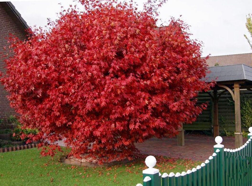 Осенний сад можно сделать еще более привлекательным и ярким, чем весенний, если умело использовать в нем особые акценты. Одним из них может стать клен Гиннала. Для тех, кто пока еще с ним не знаком, наш краткий обзор. 🍁Клён Гиннала - растение, которое привлекает внимание своей особой декоративностью. Оно относится к семейству Сапиндовые и родом из Японии, где его считают идеальным вариантом для создания бонсаев. 🍁Высота этого дерева или кустарника может достигать от 3 до 10 метров, а ширина кроны – до 8 метров. У него короткий ствол длиной не более 40 см, от которого отходят длинные прямые ветви. 🍁Весной на нем появляются небольшие ароматные желтовато-зеленые цветки, собранные в кисти. Однако, самая красота наступает осенью когда листья клёна окрашиваются в яркие оранжевые или ярко-красные тона. Еще большую декоративность ему придают ярко-розовые крылатки семян. 🍁Растение является сильным медоносом и привлекает на участок большое количество насекомых - опылителей 🐝. ?