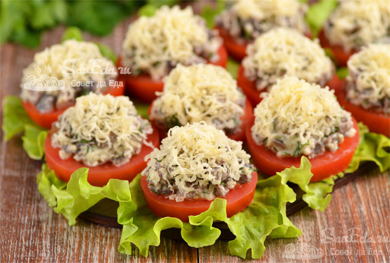 Быстрая закуска из помидоров и грибов (сочно и очень вкусно)
