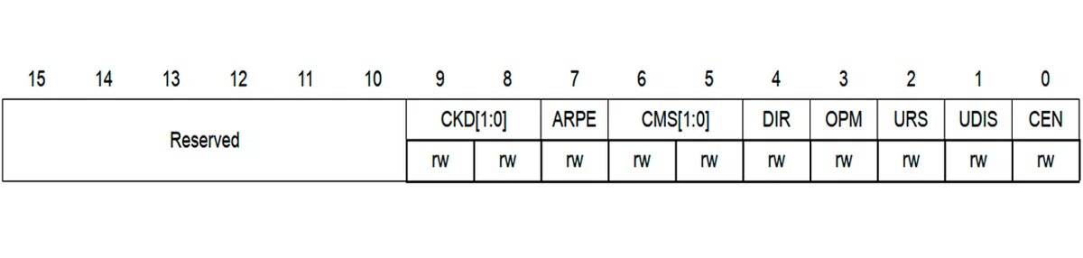 В микроконтроллерах STM32, таймеры представляют собой многофункциональные периферийные устройства, используемые для выполнения различных задач, таких как генерация прерываний, управление ШИМ-сигналами, измерение временных интервалов и многое другое. Регистр TIMx_CR1 (где x - номер таймера, например, TIM1 или TIM8) относится к контрольному регистру таймеров TIM1 и TIM8, которые входят в категорию Advanced-control timers в STM32.