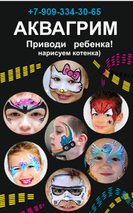 Доброго дня! У меня день, поэтому здороваюсь так. Что самое главное в детском празднике? Как Вы думаете? Эмоции детей. Я провожу праздники давно и точно знаю как сделать так, чтобы дети были просто счастливы от мероприятия которое Вы проводите. Я художник и занимаюсь всем что связано с оформлением визуала Ваших мероприятий. Афиши, фотозоны, аквагрим это ко мне. Дети будут довольны от того какие картинки нарисуют им наши чудесные аквагримеры. Они получат именно тот заряд эмоций, о котором мечтали. все что здесь представлено, создано мной и моими партнерами. Это фотографии с реально проведенных мероприятий. Мы работаем с профессиональной серией материалов Аквагрим-красок Splash, которые имеют все необходимые сертификаты соответствия, используем детские салфетки для очищения лица перед аквагримом, новые и качественные материалы. Мы можем провести мероприятие по Вашему заказу и сделать аквагрим в любой стилистике. Также дополнительно Вы можете заказать: блеск тату, бодиарт на теле, тату хн