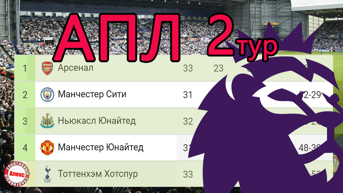 Чемпионат Англии (АПЛ). Результаты 2 тура, расписание + таблица Испании, Италии, Франции, Германии.